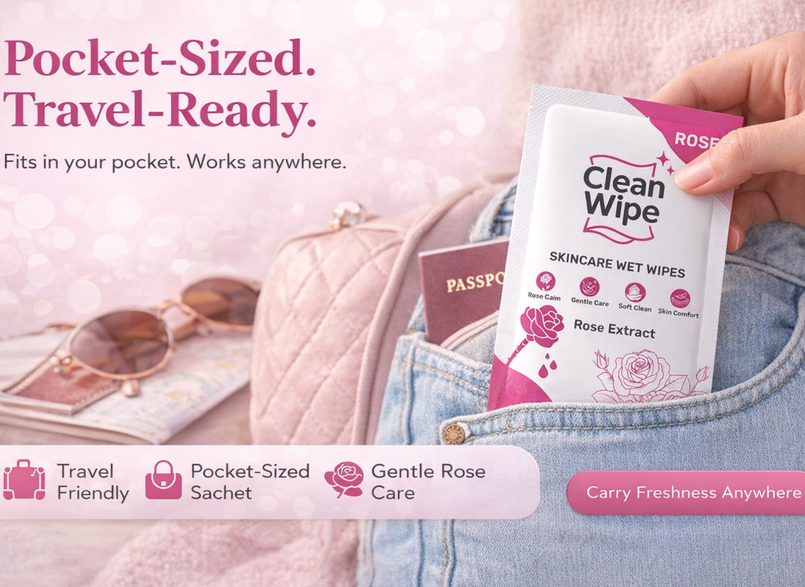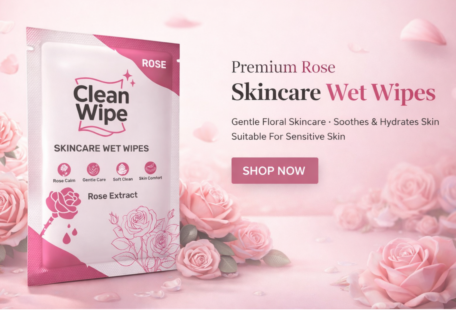Skincare Rose Extract Wet Wipes Rose